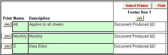 the Clicking on any of these ”Go To” buttons will take you to the corresponding sheet in the workbook. This might come in handy if you aren’t familiar with the worksheet name. Footer Columns Let’s take a look at the Footer columns. These columns control the content that you have in the footers that will print on the bottom of each page of your print job.