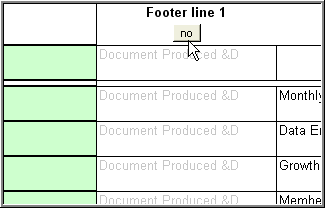 Notice the text that is currently displayed in this line - "Document Produced &D." (Note: The &D is a code that inserts the current date, so the first line of the footer would actually say Document Produced 12/31/2006.) Unless you change it, this text will print in the first line of your footer, on every page of your print job. You have several options: